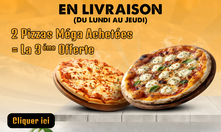 Sauce tomate, mozzarella, jambon, merguez, viande hachée, lardons.